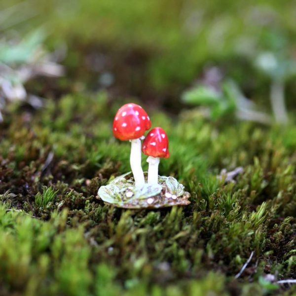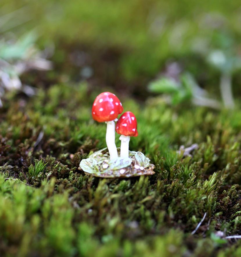 Tiny red toadstools with tiny white spots to accent your woodland display.