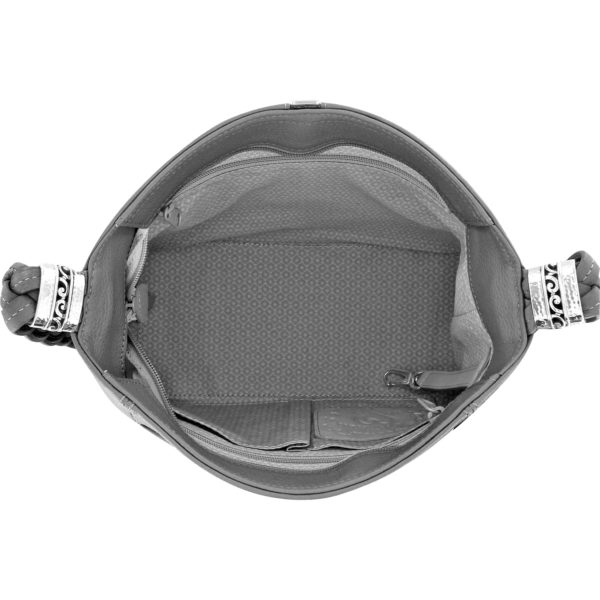 A sleek square silhouette offers contemporary style, with classic Brighton accents like its sophisticated braided handle and front panel detail. Outside pockets add ultimate convenience.