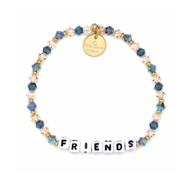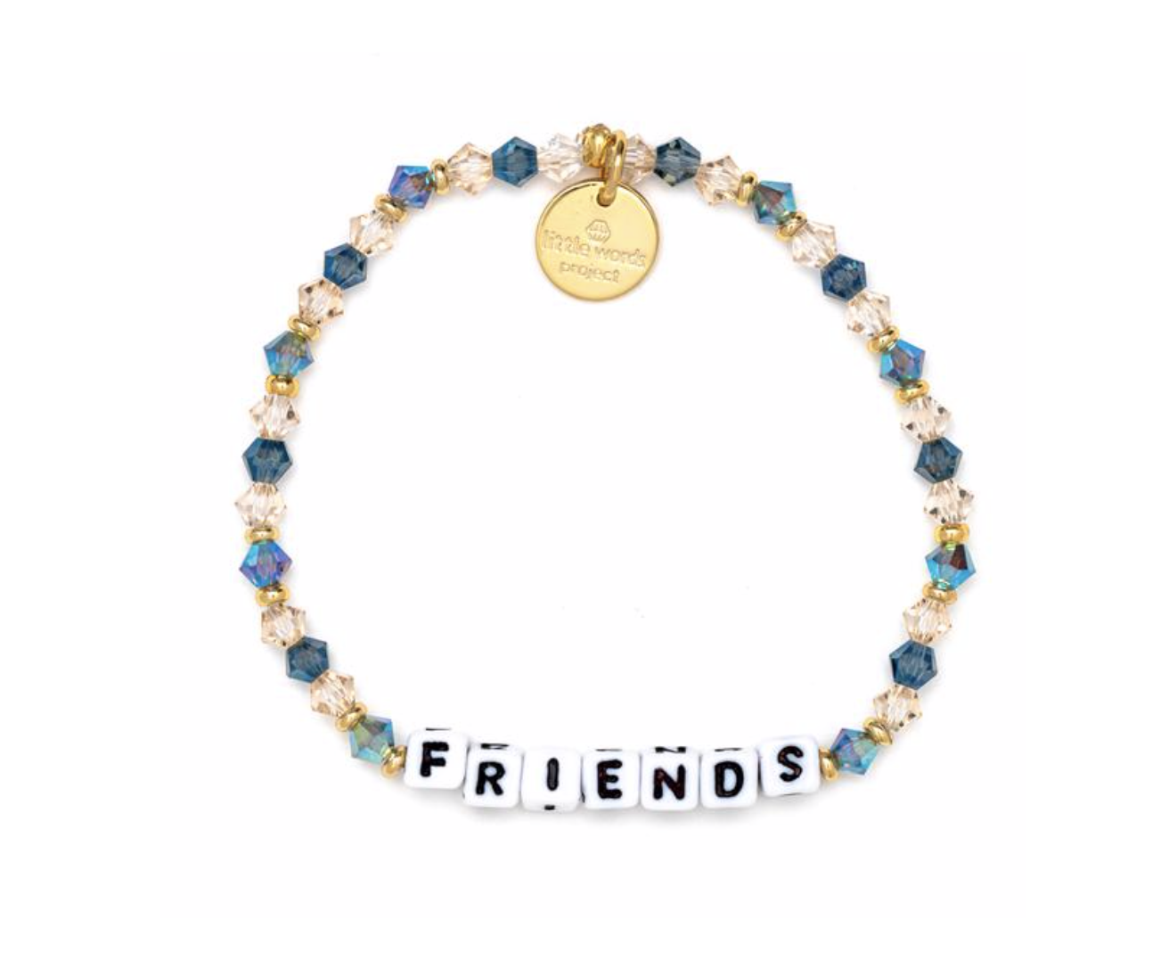 Hand-crafted, beaded bracelet Gold-plated brass hardware Elastic stretch bracelet Handle with Care – do not wet