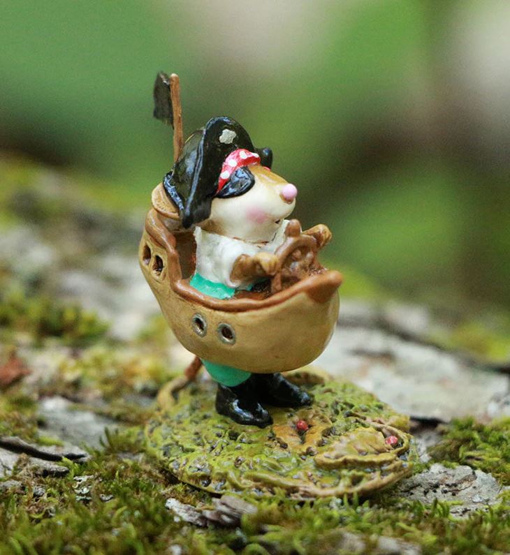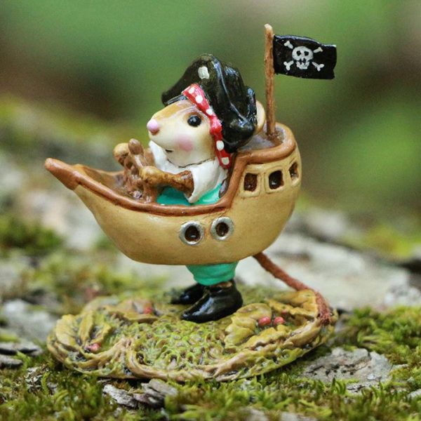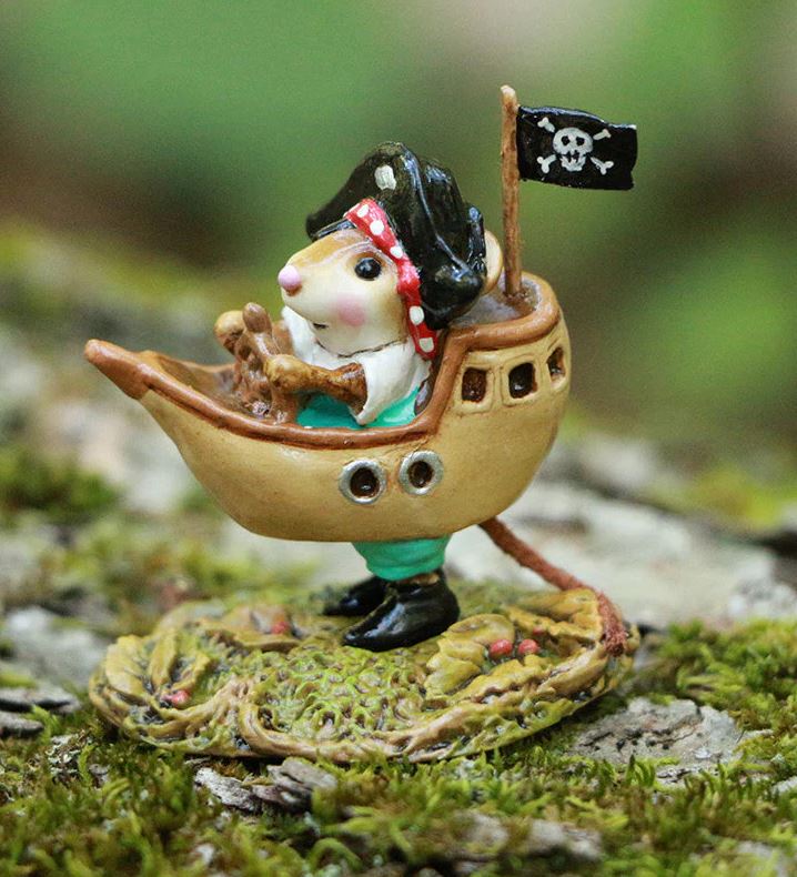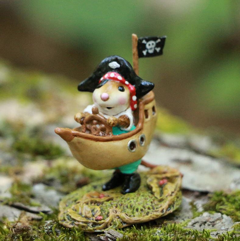 A pirate aboard his ship is steering his way towards more candy with his skull and bones flag flying high!