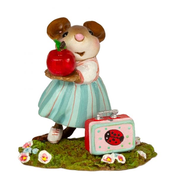 Who’s more excited to start school than a mouse with a new lunch box! She is beaming with an apple for her teacher. Now she’s off to start school! Did you notice her sweet little ladybug lunchbox?