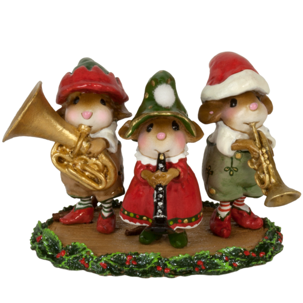 Three little elves are serenading Santa with their jovial oompah band! What a great way to celebrate Christmas.