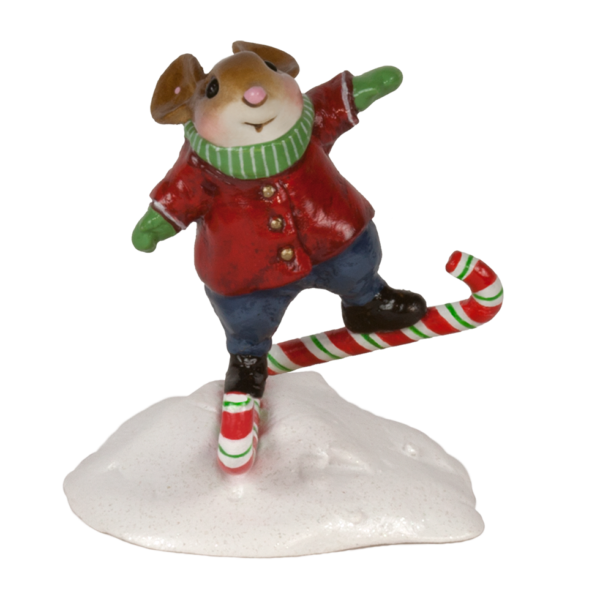 Speeding down a snowbank on a set of candy canes might only be for the most talented mouse skiers. Good thing he has the skill to navigate the slopes!