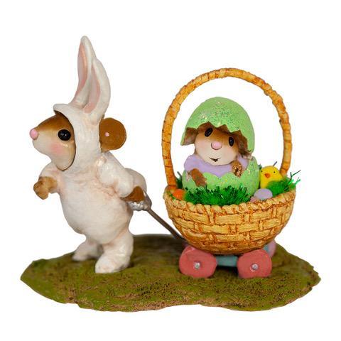 These two are all dressed up in Easter Bunny and Easter Egg outfits complete with a tow-able basket and are on their way to celebrate!