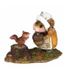 It is autumn and Thanksgiving is finally here. Abigail loves to share the season’s bounty with her wee friend, who is delighted to have something special to squirrel away! Comes in a mustard dress with a brown squirrel and a blue dress with a grey squirrel.