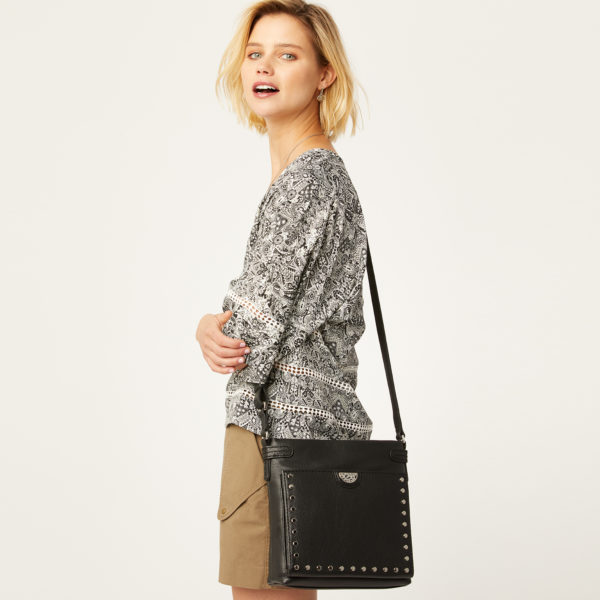 Modern and sleek, this studded crossbody organizer packs a style punch. Take a peek inside its super functional organizer pocket — no need for a wallet.